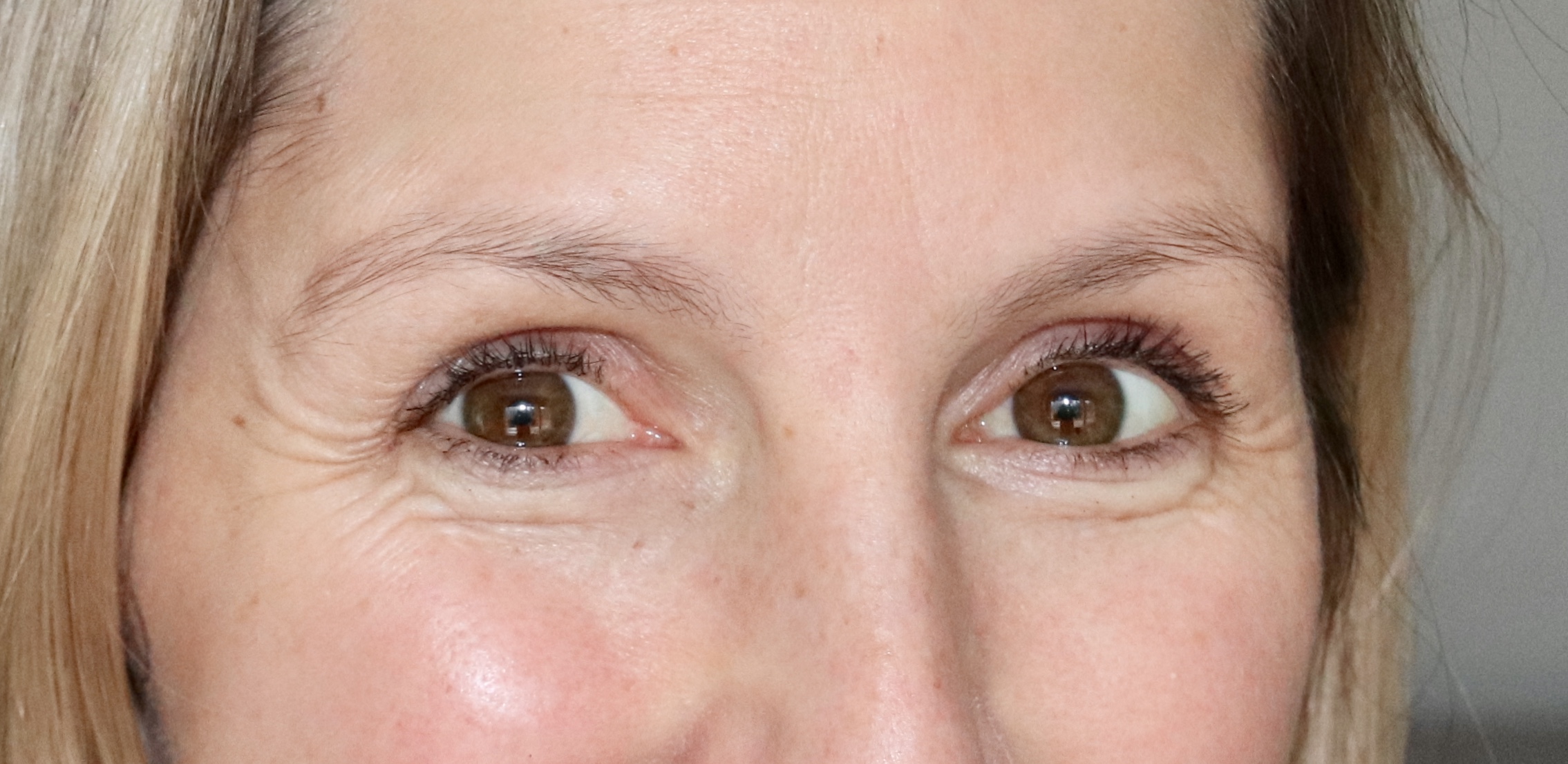 A picture paints a thousand words, so let me start by going straight to the “before and after” photos. They were taken in the same room, with the same lighting. In both photos, I’m wearing mascara and lipgloss, but absolutely no makeup on my skin. I’ve been amazed with the results!
